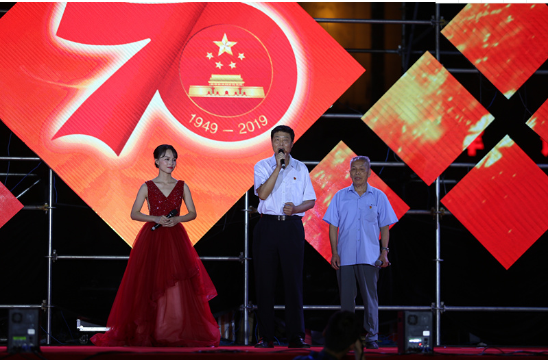 学校党委书记尤剑鹏在庆祝新中国成立70周年师生文艺晚会暨“不忘初心、牢记使命”主题教育晚会上号召师生向唐庆祝书记学习