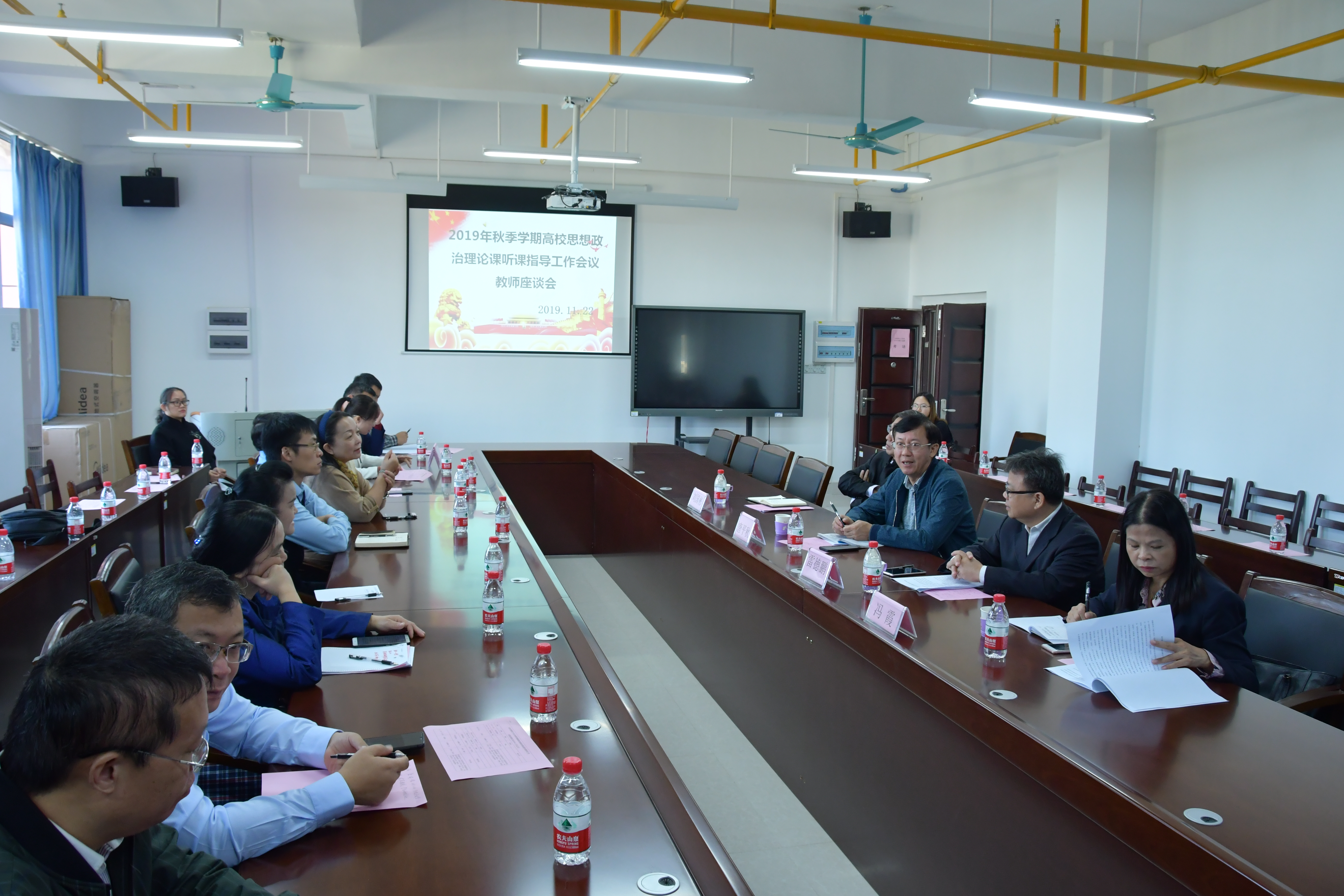 11月22日上午,以梧州学院党委书记唐平秋为组长的教育厅第二检查组4名专家,莅临鸭脖开展高校思想政治理论课检查指导工作并召开会议。学校党委副书记何并文、学校原纪委书记陈雪斌及学校相关职能部门负责人、马克思主义学院全体教师参会。