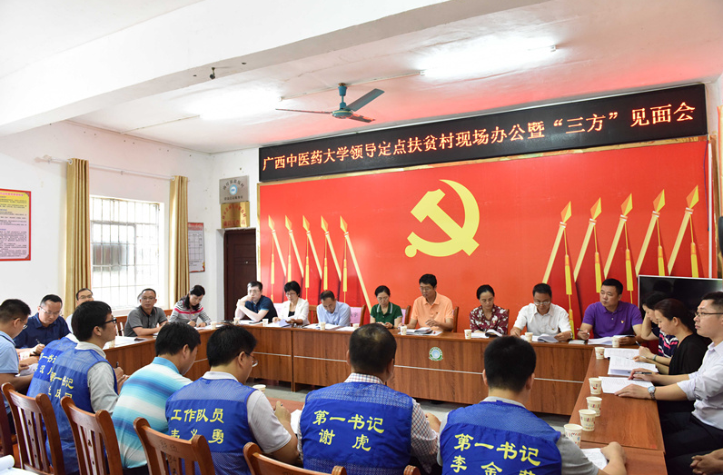 学校强化党政一把手负总责,把脱贫攻坚阵地作为主题教育课堂,锤炼党性,洗礼灵魂,扎实推进脱贫攻坚工作。学校党委书记尤剑鹏等校领导多次带领党员干部到隆安县南圩镇联伍村、四联村和布泉乡新盏村召开校领导定点扶贫村现场办公暨“三方”见面会、义诊、送医上门、捐赠、走访贫困户、“一帮一联”等活动。