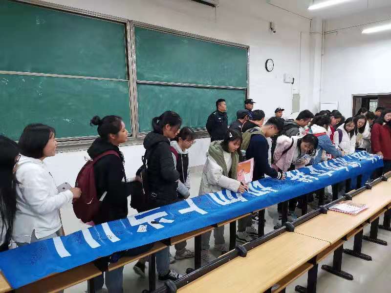 学校200名师生参加宣讲活动并在“远离传销,切莫交钱,切莫上切”宣传签名带上签上自己名字。同学们纷纷表示:通过宣讲活动,进一步了解到传销、诈骗手段的多样性以及危害性,从而懂得如何识别、预防传销和各种诈骗行为,提高了自我的防范意识与能力,受益匪浅!