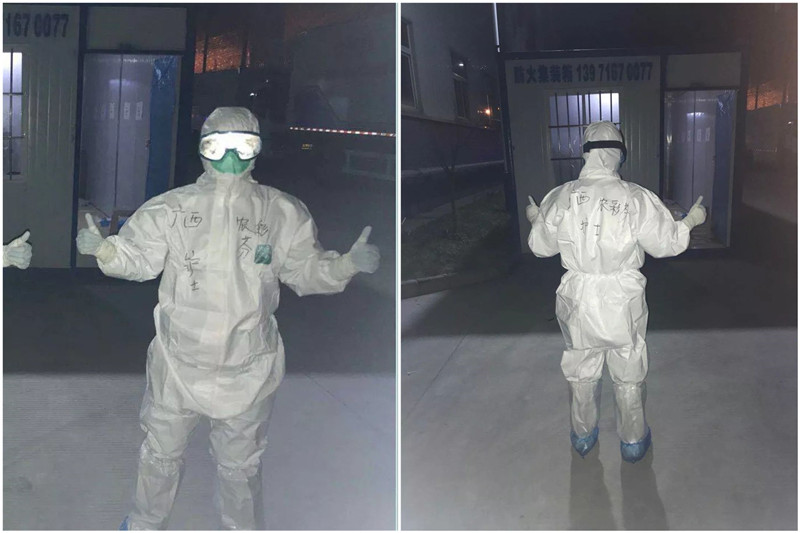 晚上9点,欧阳暾、胡春明、唐运宽、农彩芬等小心翼翼地穿上防护装备,全副武装,自信满满,征战前线。武汉的深夜,寂静而寒冷。“未亲历过前线的艰难险阻,或许在后方就未必对生活知足;不吃苦中苦,不知福中福!难熬的寒夜已经过去,春日正在升起!感谢所有的亲人、领导、老师、同事、同学、朋友等对我的关心和支持!我们,必胜!” 出舱后,欧阳暾在微信朋友圈这样写道。