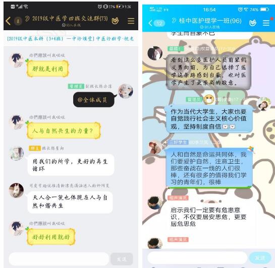 鸭脖共有1万余名学生收看了思政大课。马克思主义学院还组织学生开展线上讨论,畅谈认识和体会。收看学习后,同学们还在班级群里展开热烈的讨论,结合专业特点,纷纷讨论了如何结合自己的专业知识更好的为社会奉献自己的力量,全校近60%的学生发表个人感想。