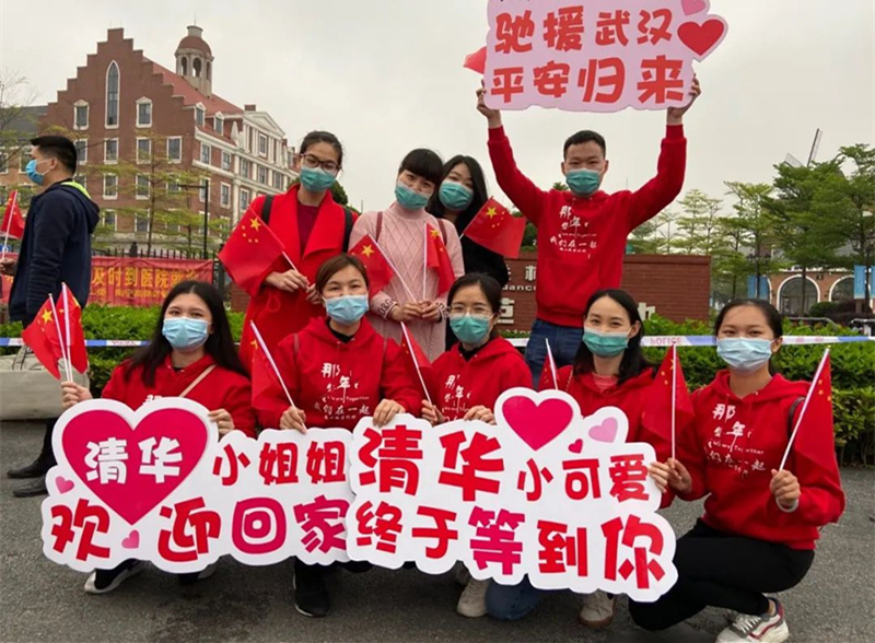 “战疫武汉心不悔,平安凯旋见亲人。”