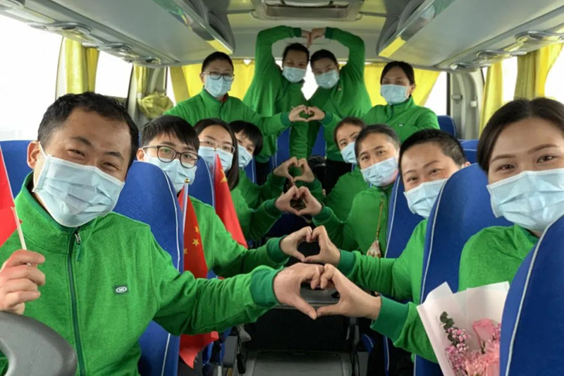 29日的武汉,细雨纷飞。上午11时,短暂的送别仪式后,队员们乘坐大巴前往武汉天河机场。挥别前来送行的武汉市民,队员们不禁感慨,他们感动于这个英雄的城市,感动于这些英雄的人民,感动于病患们的坚强勇敢,感动于志愿者们的无微不至,感动于生死之交的情谊……点点滴滴,说不完,道不尽。