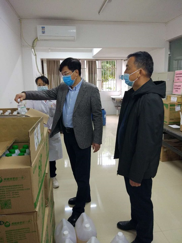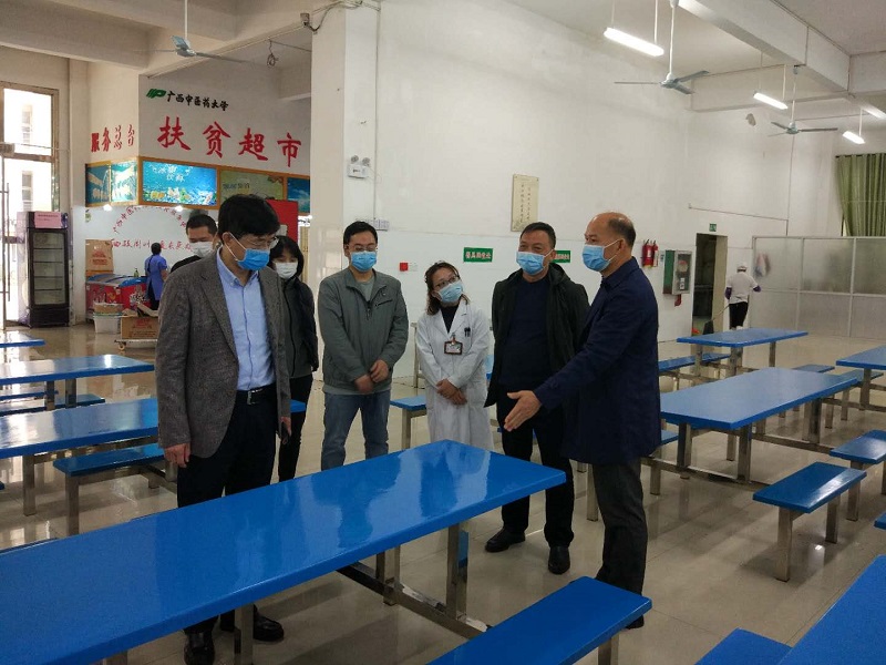 3月31日,鸭脖副校长、新冠防控领导小组常务副组长吴琪俊在后勤处处长冯第林等的陪同下,检查了学校开学后勤防控准备工作。