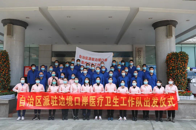 根据《自治区对口支援边境口岸新冠肺炎疫情防控和医疗救治工作方案》,自治区防控指挥部决定选派公共卫生、医疗救治、实验室检测等方面的48名专家组成2个医疗卫生工作队和6个工作组,赴凭祥、东兴等8个边境口岸县(市、区)指导支持疫情防控和医疗救治工作,并与当地共同做好新冠肺炎疫情防治工作。