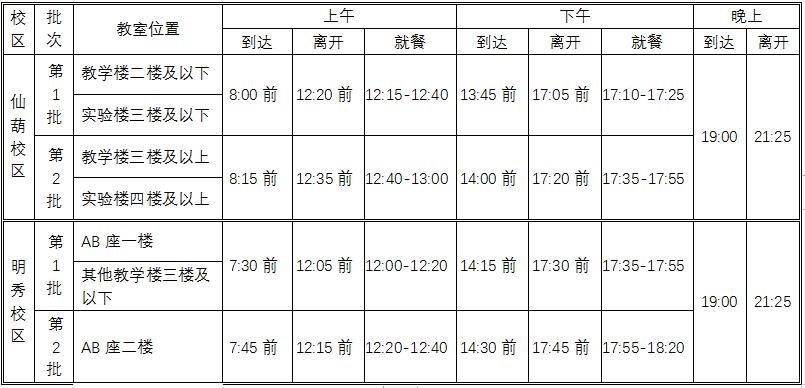 1.两校区根据离开教室的不同时间段,学生错峰就餐。详细时间安排上表。