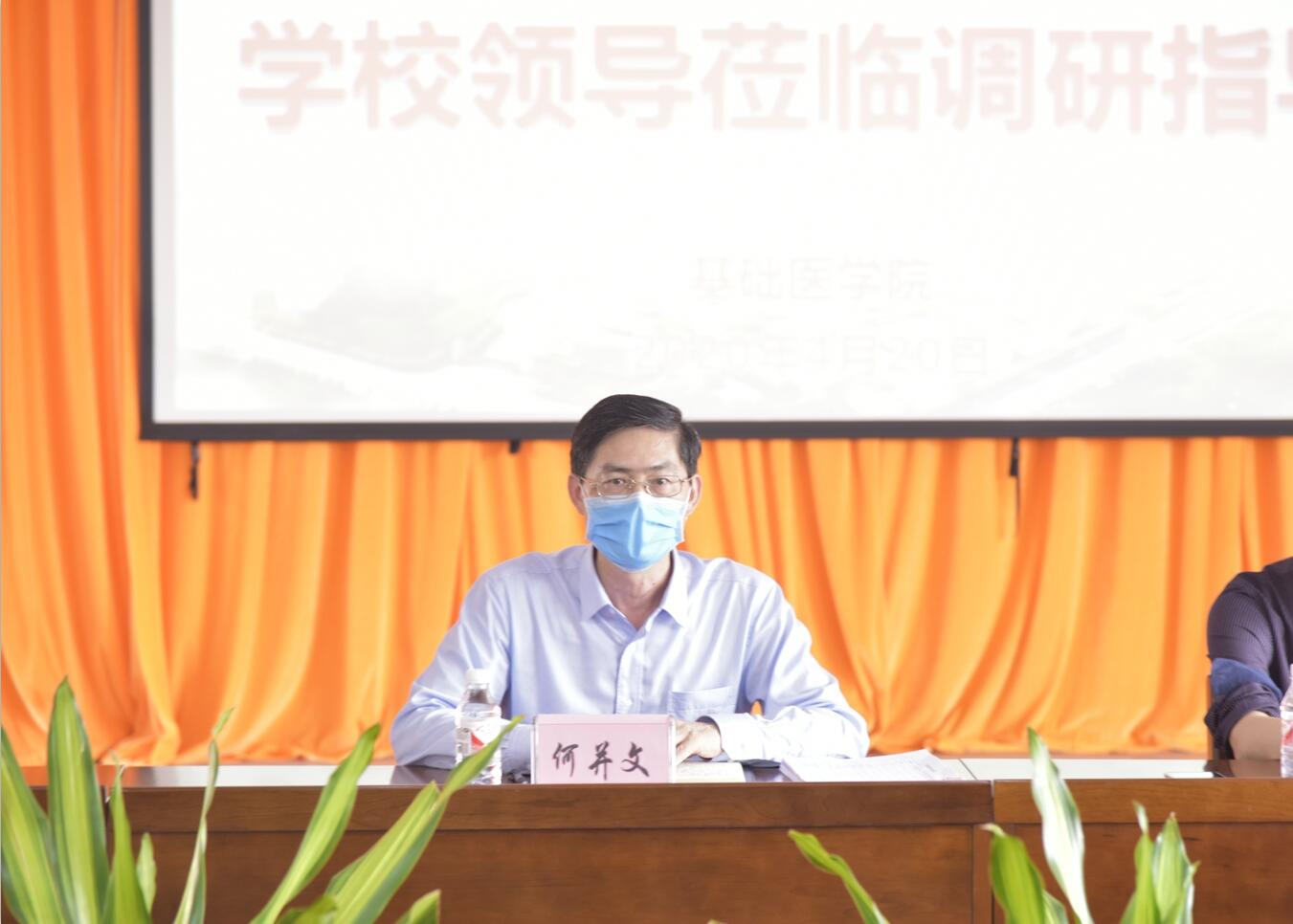 何并文副书记带队到基础医学院调研 来源:基础医学院 作者:基础医学院 日期:2020-04-21 点击数: 次 分享到: 4月20日,学校党委副书记何并文带队到基础医学院就党建工作、人才队伍建设、干部队伍建设等方面开展调研。学校党委常委、组织部部长唐振宇、人事处处长黄燕、组织部副处级组织员张艳娟陪同调研。何并文副书记讲话会议现场 打印正文 关闭本页