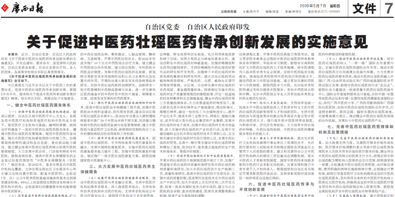 【广西日报】关于促进中医药壮瑶医药传承创新发展的实施意见