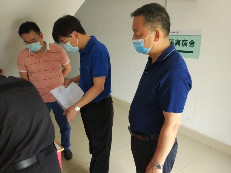 5月13日上午,学校副校长吴琪俊在防控办公室主任冯第林、副主任叶绘晟的陪同下检查了仙葫校区发热隔离区。