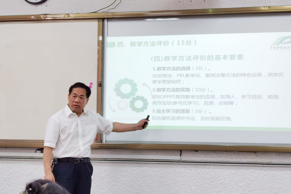会上,罗伟生做了题为《如何开展课堂教学评价》的培训讲座,他从教学态度评价、教学能力评价、教学内容评价、教学方法评价、教学手段评价、教书育人评价及教学效果评价七个方面对教师课堂教学的评价要素展开培训。