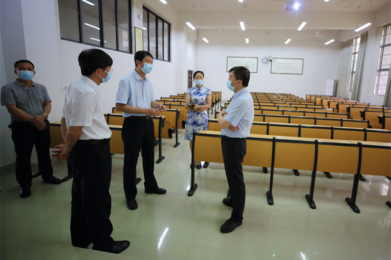 5月16日上午,自治区教育厅副厅长黄雄彪一行到鸭脖仙葫校区检查开学工作情况。学校党委书记尤剑鹏、副校长吴琪俊以及相关部门负责人陪同检查。
