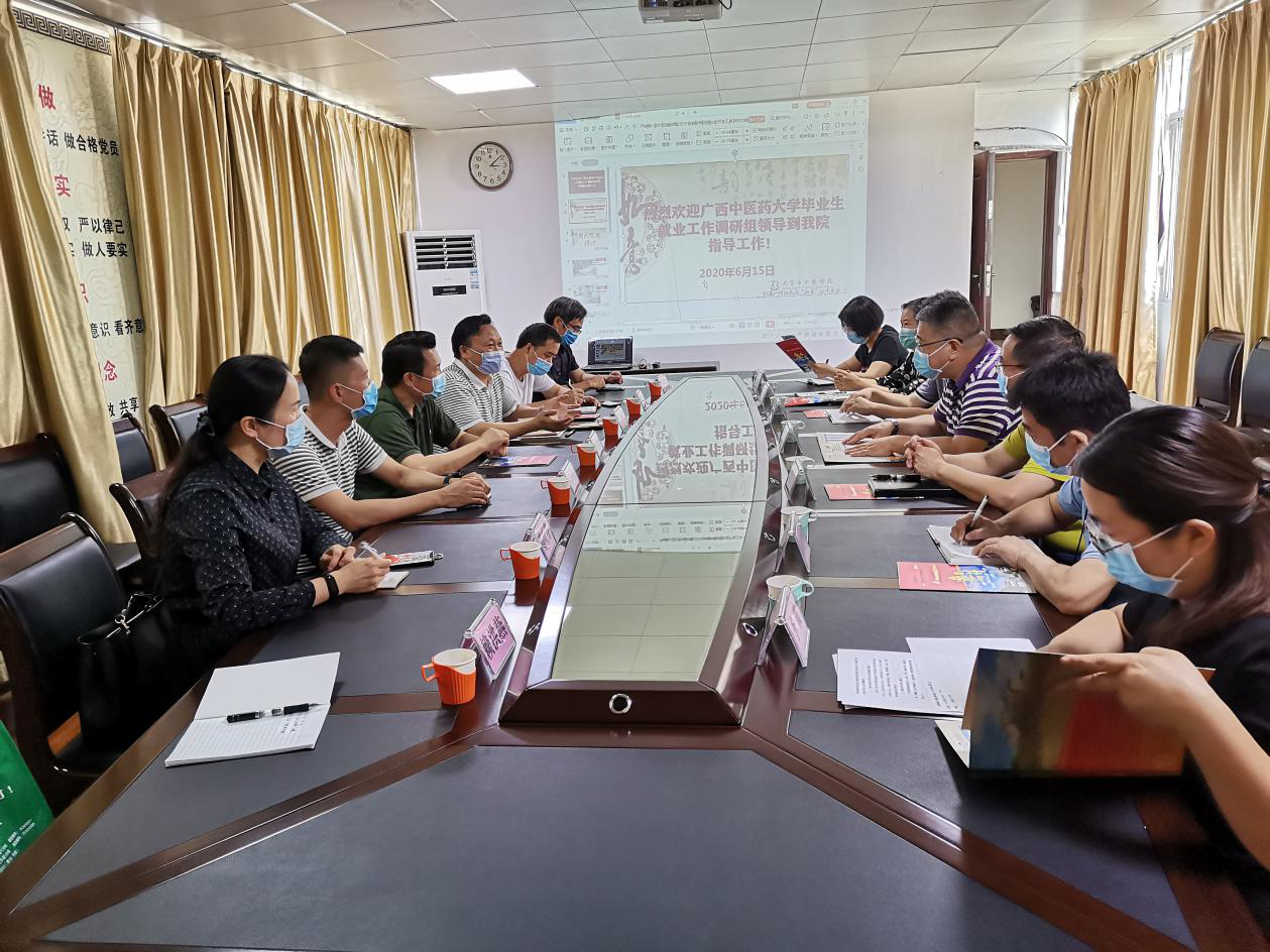 6月15日下午,学校党委副书记庞宇舟带领招就处、研究生院、针灸推拿学院、护理学院一行7人到南宁市中医医院进行调研座谈。
