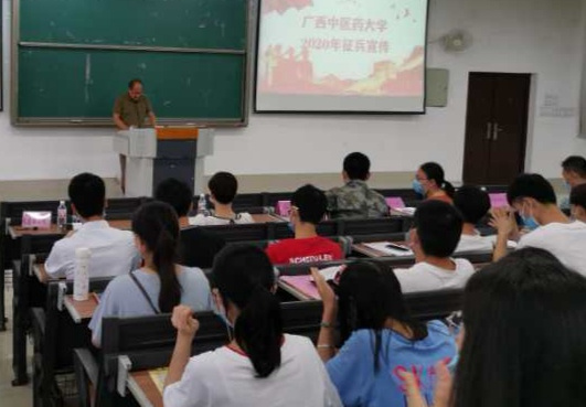 为进一步推进学校征兵工作,完成上级征兵机构下达鸭脖征兵任务,6月24日晚,学校武装部在仙葫、明秀两校区同时再次组织召开征兵宣讲会。青秀区政府武装部、军人退役事务局和学校学工处、招就处、高职院等部门领导、老师出席,学校应届毕业生和在校生500多人参加。