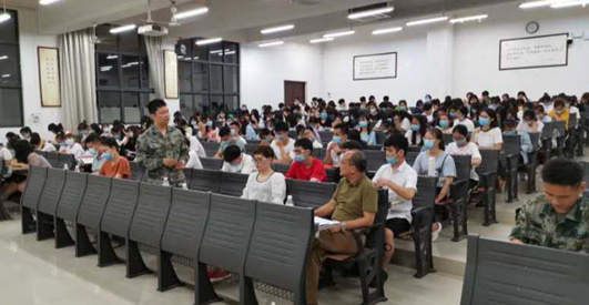 青秀区政府武装部何运涛干事、学校武装部部长张春、国防教育科长王怿清等同志进行宣讲。从民族复兴的中国力量需要坚强国防来支撑,一流军队需要优质兵员作脊梁,正当芳华的有志青年需要熔炉淬炼成大业,参军入伍流程、国家征兵政策及鸭脖应征入伍大学生优抚办法等内容进行了宣讲;优秀退伍返校学生也纷纷登台畅谈绿色军营生活体会,武装部的领导同志现场还解答同学们的各种有关应征入伍问题,收到很大的反响。