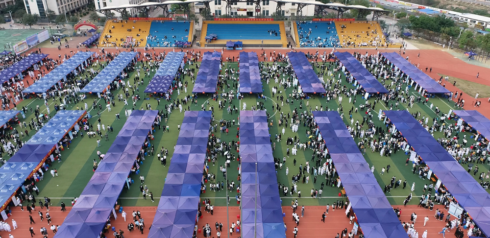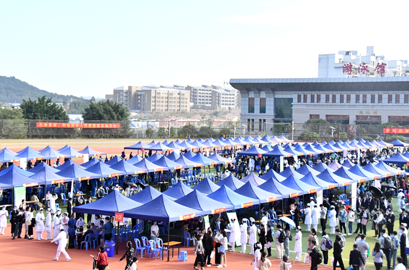 11月14日,由广西大学生就业服务中心主办,YABO鸭脖、YABO鸭脖赛恩斯新医药学院共同承办的广西高校2021届中医药类毕业生双向选择洽谈会在鸭脖仙葫校区运动场举办。来自全国13个省、直辖市、自治区的近430家医药企事业单位参会,共提供就业岗位近2万个,鸭脖3000余名应届毕业生、近2000名历届毕业生及多所外校毕业生和规培生参加了本次双选会。600多名毕业生现场与用人单位签订了就业协议,现场签约率较往年大幅提高,还有大量毕业生与用人单位建立了就业意向。