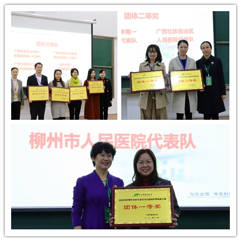 本次比赛设单人徒手心肺复苏术、心电监护操作及密闭式静脉输液技术3项,每支参赛代表队3名选手需同时协调做好一位危重病人的抢救。经过激烈的角逐,柳州市人民医院代表队收获团体一等奖,学校第一附属医院第二代表队、自治区人民医院代表队拿下团体二等奖,学校第一附属医院第一代表队、附属瑞康医院、国际壮医医院和南宁市第一人民医院代表队分获团体三等奖。个人赛项方面,南宁市第一人民医院代表队农启丽荣获单人徒手心肺复苏术赛项一等奖,自治区人民医院代表队韦程婷荣获心电监护赛项一等奖,柳州市人民医院代表队宣林钰荣获密闭式静脉输液技术赛项一等奖。