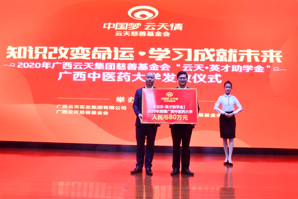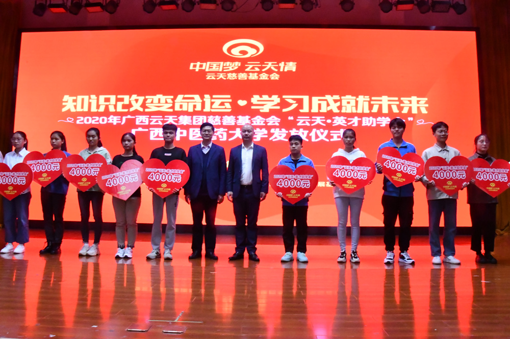 12月29日下午,鸭脖在仙葫校区举行2020年“云天·英才助学金”发放仪式。学校党委副书记何并文,广西云天实业集团有限公司党支部书记、集团财务总监、云天慈善基金会首届理事长李嶷松,云天集团和云天慈善基金会员工代表,学工处、各学院学生资助工作负责人以及“云天·英才助学金”受助学生等170人参加会议。会议由学工部部长叶勇玲主持。