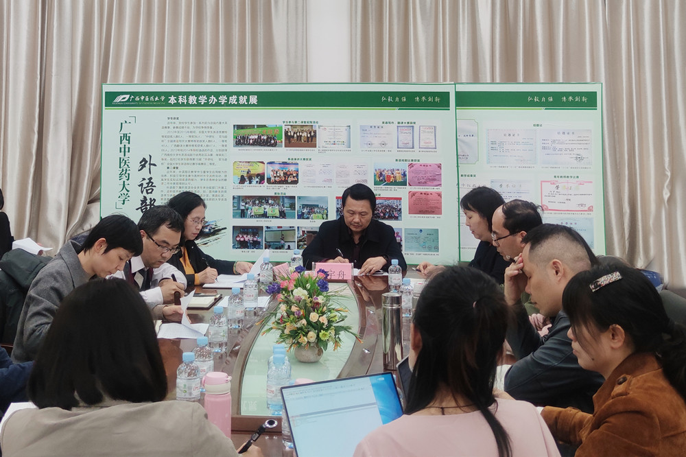 庞宇舟对外语部工作提出了五点要求:一是要进一步找准定位,借助获批翻译硕士专业学位授权点机遇,以教学为主,教研结合,协同发展;二是做好专业发展规划,无论是办公场地、教研室、实验室等硬件建设,还是人才培养的软件建设,都要力求科学化、规范化,并努力做好本科专业招生的延伸准备;三是在师资队伍建设上,要做好队伍结构优化和质量整体提升工作,进一步提高师资队伍的影响力;四是积极参与学校国际教育教学,充分发挥中医药院校兼顾外语的优势;五是以十四五规划为契机,把握广西社会及经济发展对高层次中医药翻译复合型人才的迫切需求机遇,加快中医学与翻译学交叉学科的融合发展,将外语部的建设与发展推上一个新台阶。