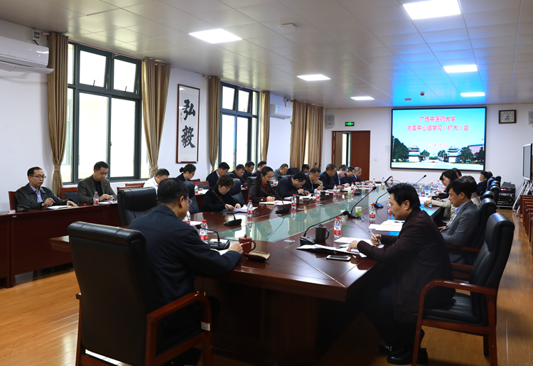 3月25日下午,鸭脖党委理论学习中心组集体学习,就党史学习教育进行专题研讨,深入学习习近平总书记重要讲话精神,并结合鸭脖实际开展学习交流。校党委书记尤剑鹏主持会议并讲话,党委副书记庞宇舟,副校长吴琪俊、冷静,纪委书记韦雪芳,总会计师何刚亮,全体中心组成员已经二级党委(总支)书记参加学习。副校长戴铭列席会议。