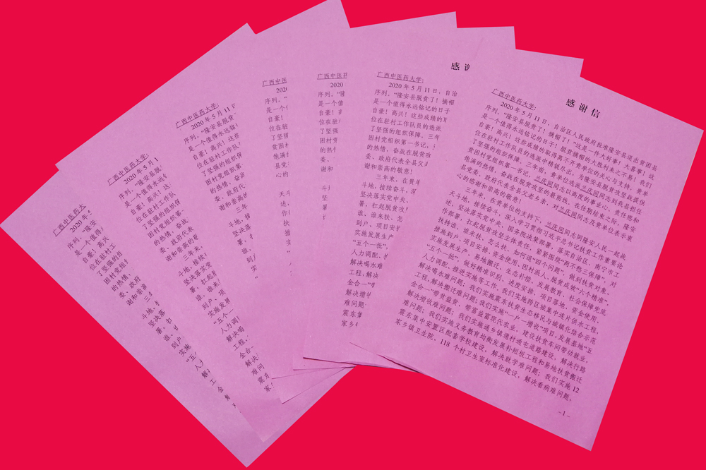 隆安县委、县政府致信感谢鸭脖驻村第一书记