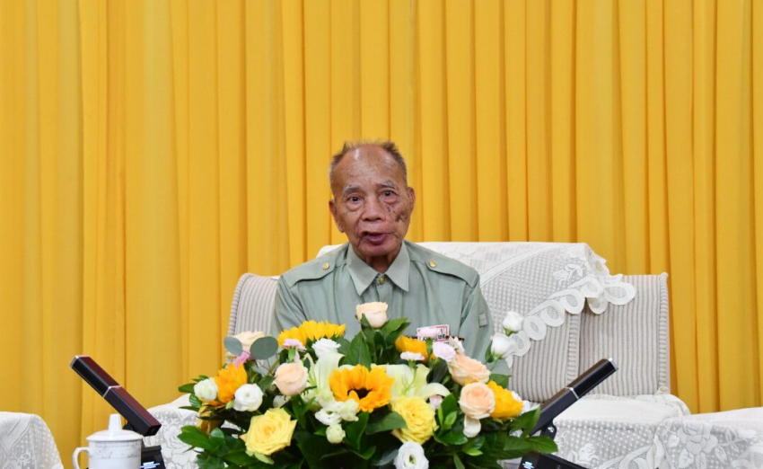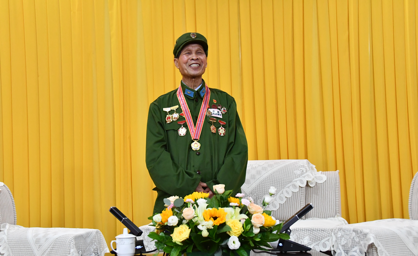 陈孔昭出生于1935年,18岁时响应祖国号召,自愿参加抗美援朝志愿军,分配到前线抗美援朝空军第四师,出色地完成率各项飞行和战斗任务,曾荣获过多项集体和个人荣誉。韦立,出生于1931年,1950年8月被分配到炮兵师, 1951年2月入朝鲜参加抗美援朝战争,战场上虽然受了重伤但仍然奋勇当前、毫不畏惧,1952年6月荣获抗美援朝纪念章。陈孔昭、韦立分别讲述了当年参加抗美援朝战争的艰苦经历和战斗故事,对比今天大幅提升的综合国力,两位老兵勉励同学们珍惜当下来之不易的幸福生活,继承好、发扬好先辈的红色精神,努力奋斗,报答父母,党和国家。