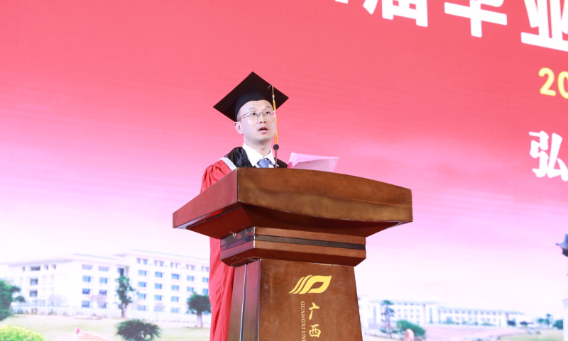 仪式上,庞宇舟教授宣读毕业文件、学位授予文件。何并文教授宣读优秀毕业生表彰决定及西部计划志愿者名单。主席台领导为自治区级优秀毕业生获得者、西部志愿者分别颁奖。