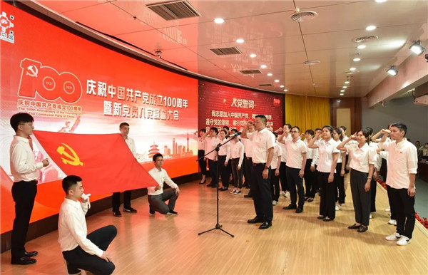 在宣誓仪式上,由桂雄斌领誓,新党员进行入党宣誓,老党员重温入党誓词,在铮铮誓言中共同追忆党走过的100年艰辛而辉煌的风雨历程,共同感悟100年举世瞩目的辉煌成就。