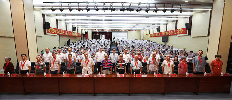 老党员的奋斗历程和光辉事迹,是我们学习党史、用好党史最宝贵的资源和财富,何并文等主席台上的领导走到“光荣在党50年“老党员代表前,为他们颁发纪念章。