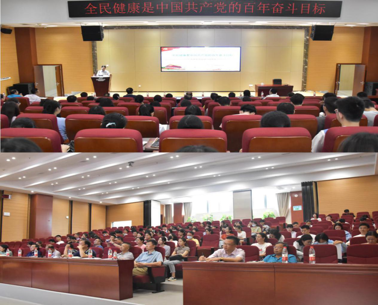 何并文以“全民健康是中国共产党的百年奋斗目标”为主题,结合学习贯彻习近平总书记“七一”重要讲话精神,围绕中国共产党所领导的医药卫生健康事业,以大量事实和数据为依据,深入浅出地阐述了中国卫生健康领域转型发展的光辉历程,从实现健康中国为目标的初心、自信、出路、使命、发展五个方面全面回顾和讲解新中国卫生教育事业的光辉发展历程和伟大奋斗目标,深刻讲述了推进健康中国建设为实现“两个一百年”奋斗目标、实现中华民族伟大复兴的中国梦所打下坚实的健康基础。
