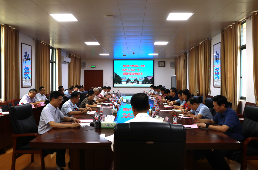 学校党委常委、组织部部长唐振宇,党办主任徐方明,人事处处长黄燕,马克思主义学院院长韦兆钧,国教院院长蒋基昌,校团委书记杨删,一附院党委书记桂雄斌,附属瑞康医院纪委书记黄建民,附属国际壮医医院党委书记秦祖杰,辅导员代表宋南等同志结合自己的工作实际,分享了自己的学习理解和领悟,并展开了交流和讨论。