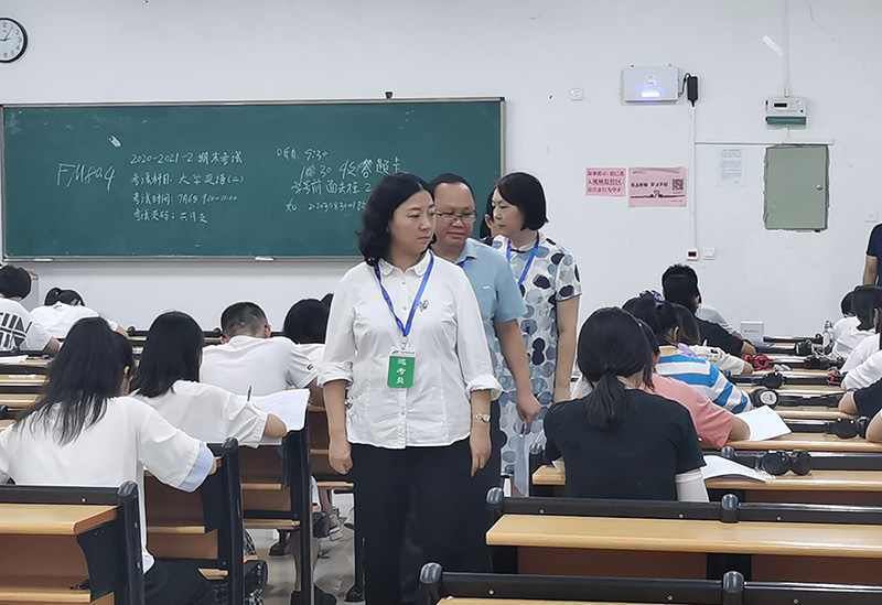 为了严肃考风考纪,检验教学成效,树立优良学风,学校在本科考试课程实施了教考分离。为了确保本次期末考试顺利实施,学校领导高度重视, 7月5日~16日,学校2020~2021学年下学期期末考试期间,学校党委书记尤剑鹏、校长姚春,副书记庞宇舟、何并文,副校长吴琪俊、冷静、戴铭,纪委书记韦雪芳、总会计师何刚亮亲临现场巡考。