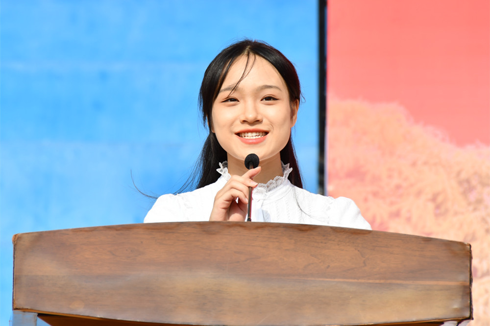 开学典礼上,学校领导为2021级新生佩戴校徽,庞宇舟带领新生领誓医学生誓言。教师代表基础医学院中基内经教研室蒋筱、在校生代表2019级制药工程专业刘帆、2021级博士研究生代表苏少亭、2021级预防医学专业代表廖晓婷分别在开学典礼上进行了发言。