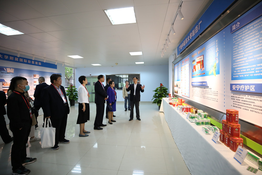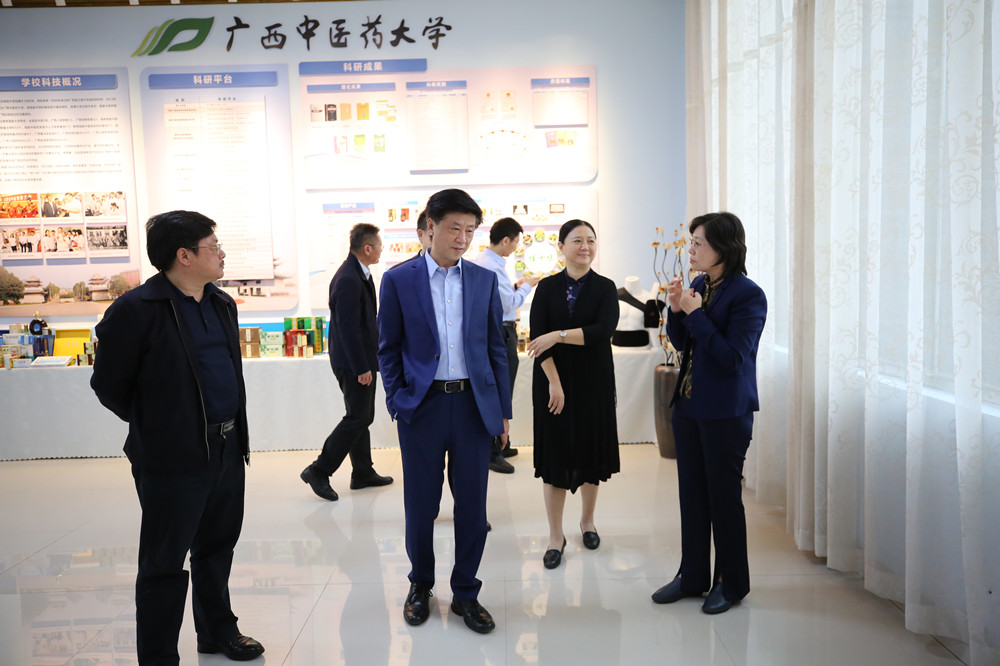 出席全国中医药院校校长研讨会的领导嘉宾参观鸭脖 来源:党委宣传部 作者:宣传部 日期:2021-10-16 点击数: 次 分享到: 10月15-16日,在南宁出席第九届中药材基地共建共享交流大会暨中医药院校校长研讨会的国家中医药管理局科技司司长李昱、全国中医药院校的领导嘉宾到鸭脖仙葫校区参观。学校校长姚春、副校长冷静、戴铭等陪同参观了仙葫校区晨钟暮鼓楼、广西中医药科学实验中心及校园风貌,并简要介绍了学校的建设发展情况。介绍学校科研工作情况参观广西中医药科学实验中心参观学校办学历程展 打印正文 关闭本页