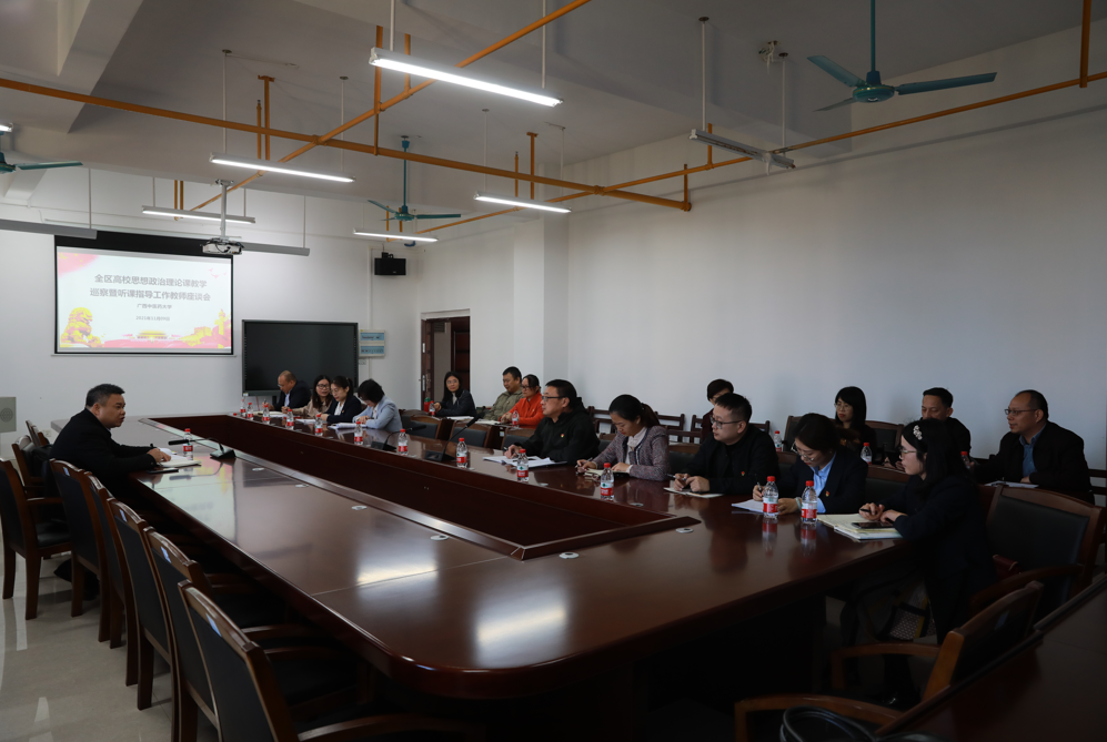 11月9日上午,自治区教育厅2021年全区高校思想政治理论课教学巡察暨教学指导工作专家组到鸭脖巡察指导工作,巡察组组长为广西民族大学党委副书记陈铭彬,组员有广西民族大学、桂林理工大学和南宁师范大学马克思主义相关学科3名专家。鸭脖党委书记尤剑鹏出席了本次巡察工作的汇报会和反馈会,校长姚春陪同巡察组现场听思想政治理论课。校党委副书记何并文在汇报会上向巡查组汇报了学校思想政治理论课的建设工作,学校相关职能部门负责人、马克思主义学院教师代表参加了汇报会和反馈会。