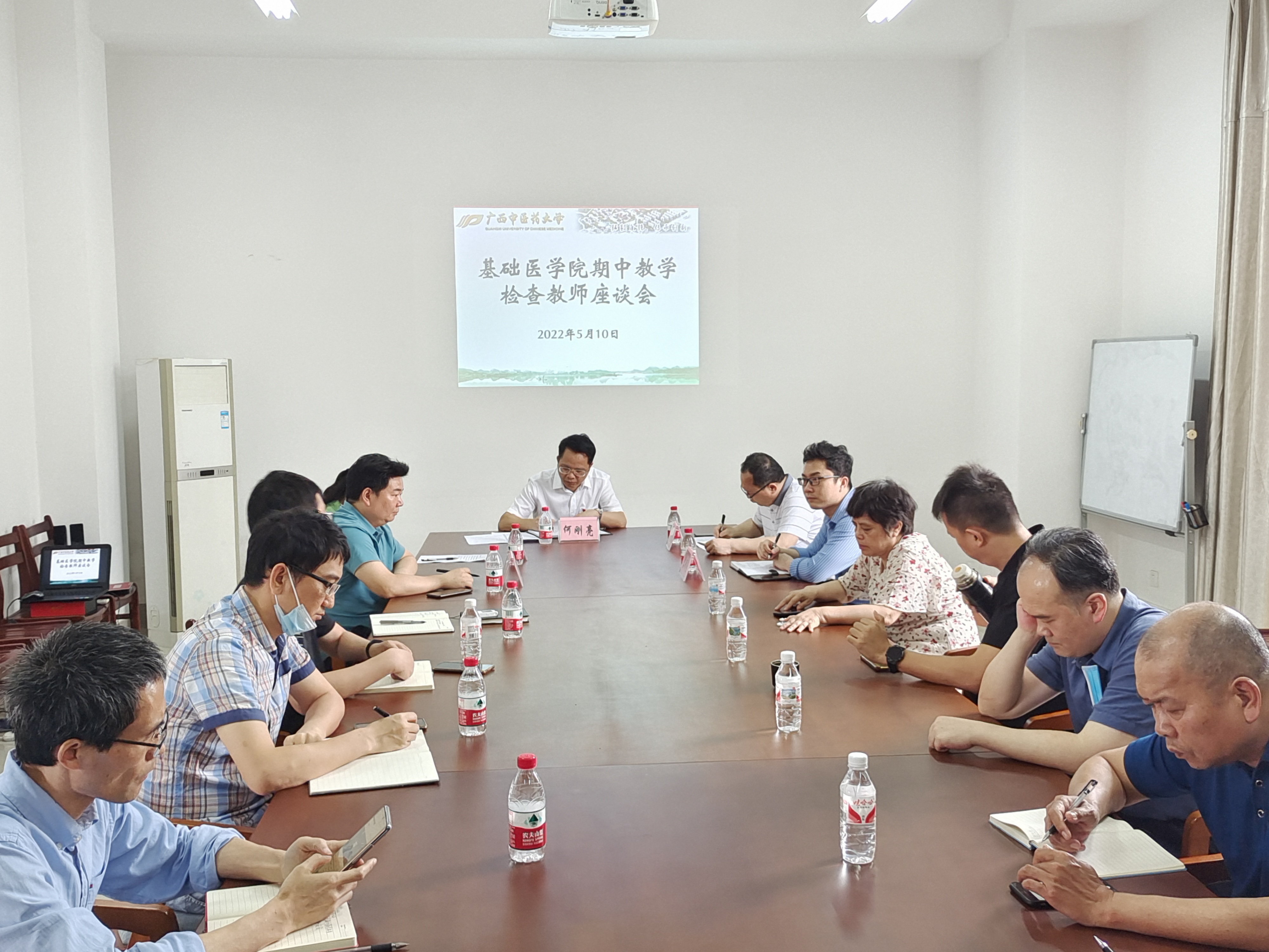 5月10日下午,学校总会计师何刚亮一行3人到基础医学院召开了2021~2022学年下学期期中教学检查座谈会。基础医学院党委副书记、院长林江、副院长夏猛,各教研室主任和秘书等二十余人参加了会议。