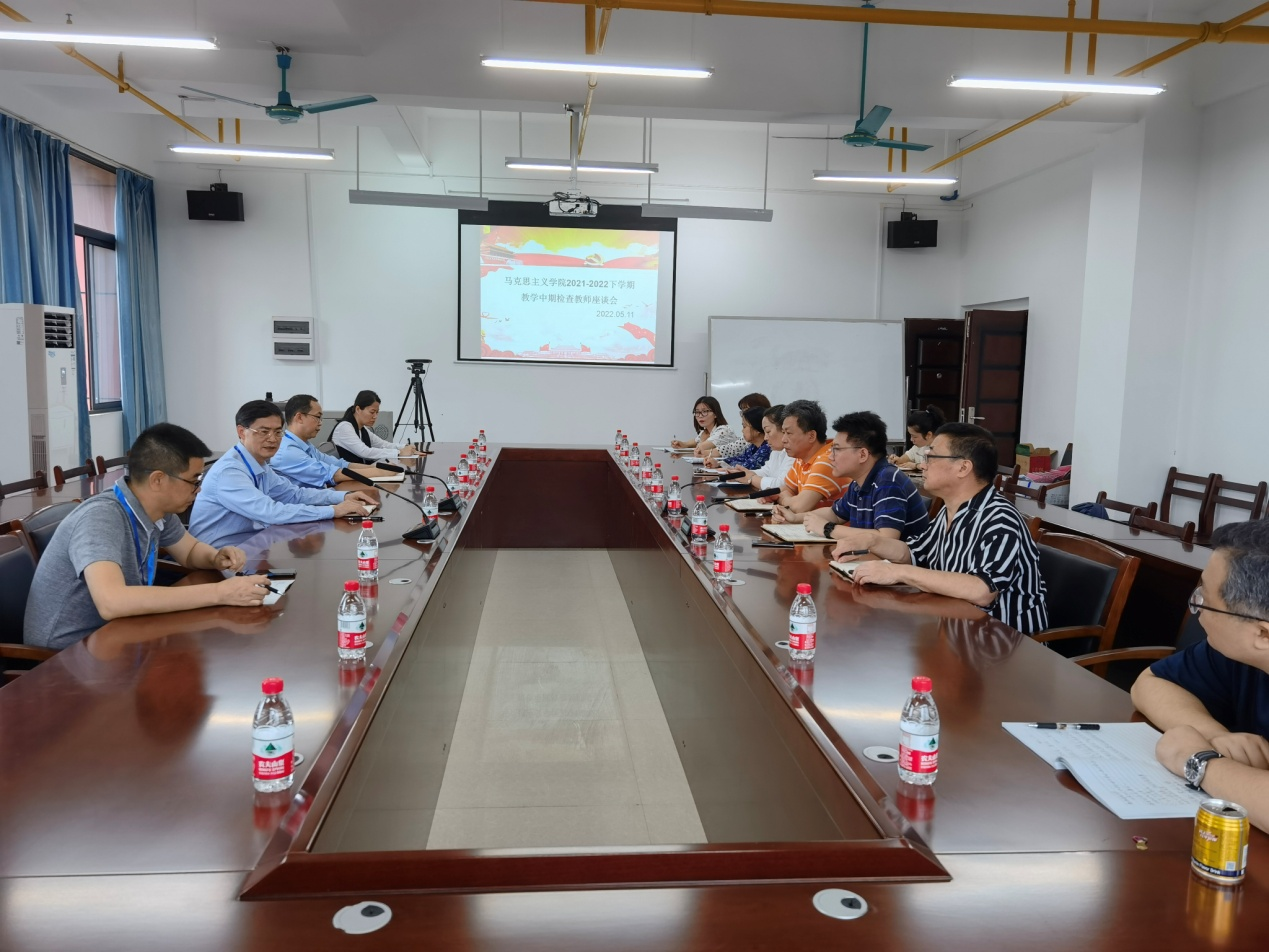 5月11日上午,学校党委副书记何并文一行到马克思主义学院召开了2021~2022学年下学期期中教学检查座谈会,学校组织部领导、教育评价与质量保障中心等相关部门领导老师陪同参加。马克思主义学院院长韦兆钧、副院长李源,教学科研办公室和各教研室主任、秘书等参加了会议。