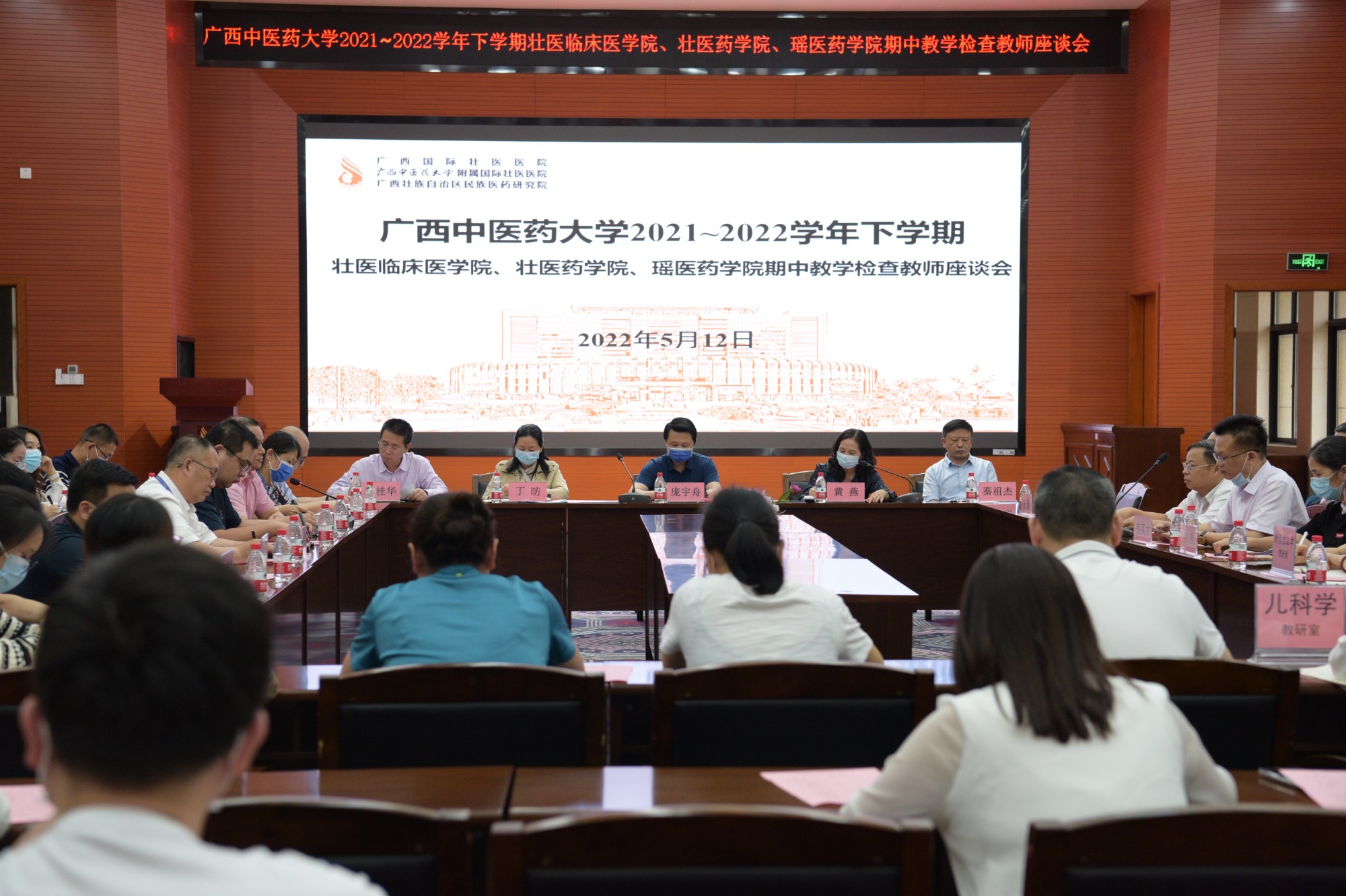 YABO鸭脖2021-2022学年下学期壮医临床医学院、壮医药学院、瑶医药学院期中教学检查教师座谈会于5月12日在广西国际壮医医院举行。学校党委副书记庞宇舟出席并作指导,人事处、教务处,广西国际壮医医院(壮医临床医学院),壮医药学院,瑶医药学院负责人,教研室负责人及教师代表参加。