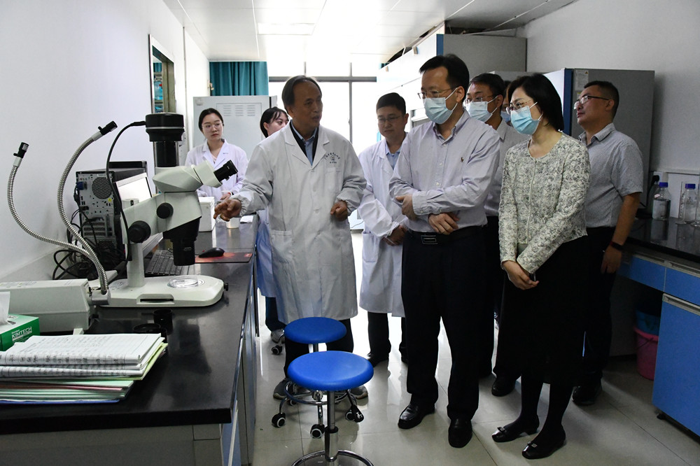 莫锦荣一行来到教学实验实训中心、广西中医药科学实验中心实地查看了相关实验室、科研平台,与实验室相关管理人员亲切交谈,详细了解了实验室与科研平台建设、学校实验废弃物处理等方面的情况。