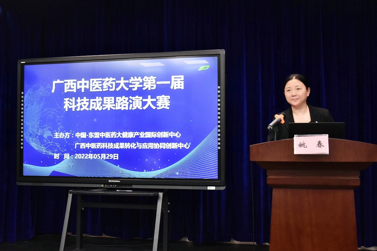 为深入贯彻落实党中央和自治区的部署,实施创新驱动发展战略,更好地搭建学校科技成果转化宣传平台,打通科技成果转化的“最后一公里”,5月29日,YABO鸭脖第一届科技成果路演大赛在学校仙葫校区图书馆8楼演播室隆重举行。YABO鸭脖校长姚春出席并致辞,党委办公室、校长办公室、人事处、教务处、科技处、学科建设办公室、招生与就业处、成果转化与社会服务处、基础医学院、药学院、壮医药学院、公共卫生与管理学院、海洋药物研究院以及学校第一附属医院、附属瑞康医院、附属国际壮医医院、制药厂等单位(部门)负责人参加。大赛由成果转化与社会服务处处长唐红珍主持。