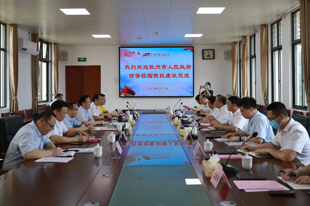 6月17日下午,钦州市人民政府副市长曾智一行9人来鸭脖调研交流。座谈会在仙葫校区合德楼525会议室举行,学校党委书记莫锦荣、副校长戴铭,党办、组织部、教务处、招生就业处等相关部门负责人参加了座谈会。座谈会由莫锦荣主持。