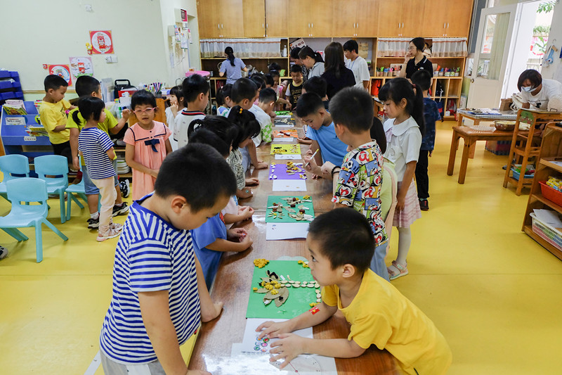 活动中途,志愿者老师给小朋友们介绍中药材拼图的方法与规则,将小朋友们进行分组,分发拼图材料,以此考验他们团队协助、动手能力及想象力。20分钟后,每个组的小朋友都能按时完成拼图。