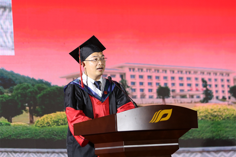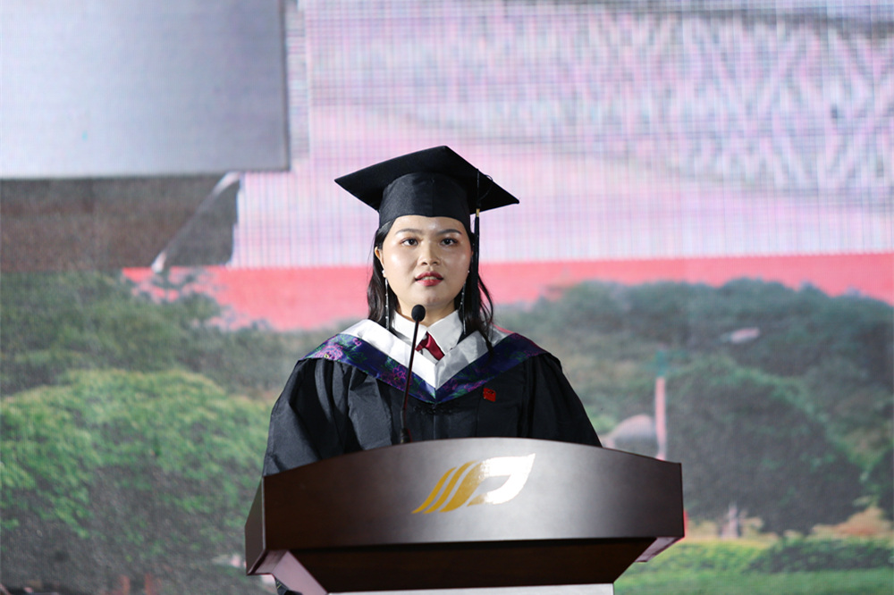 教师代表护理学院兰艺老师、校友代表梧州市中医医院党委书记梁平、博士毕业生代表2019级博士研究生龙富立、本科毕业生代表2017级壮医学专业张群分别发言。