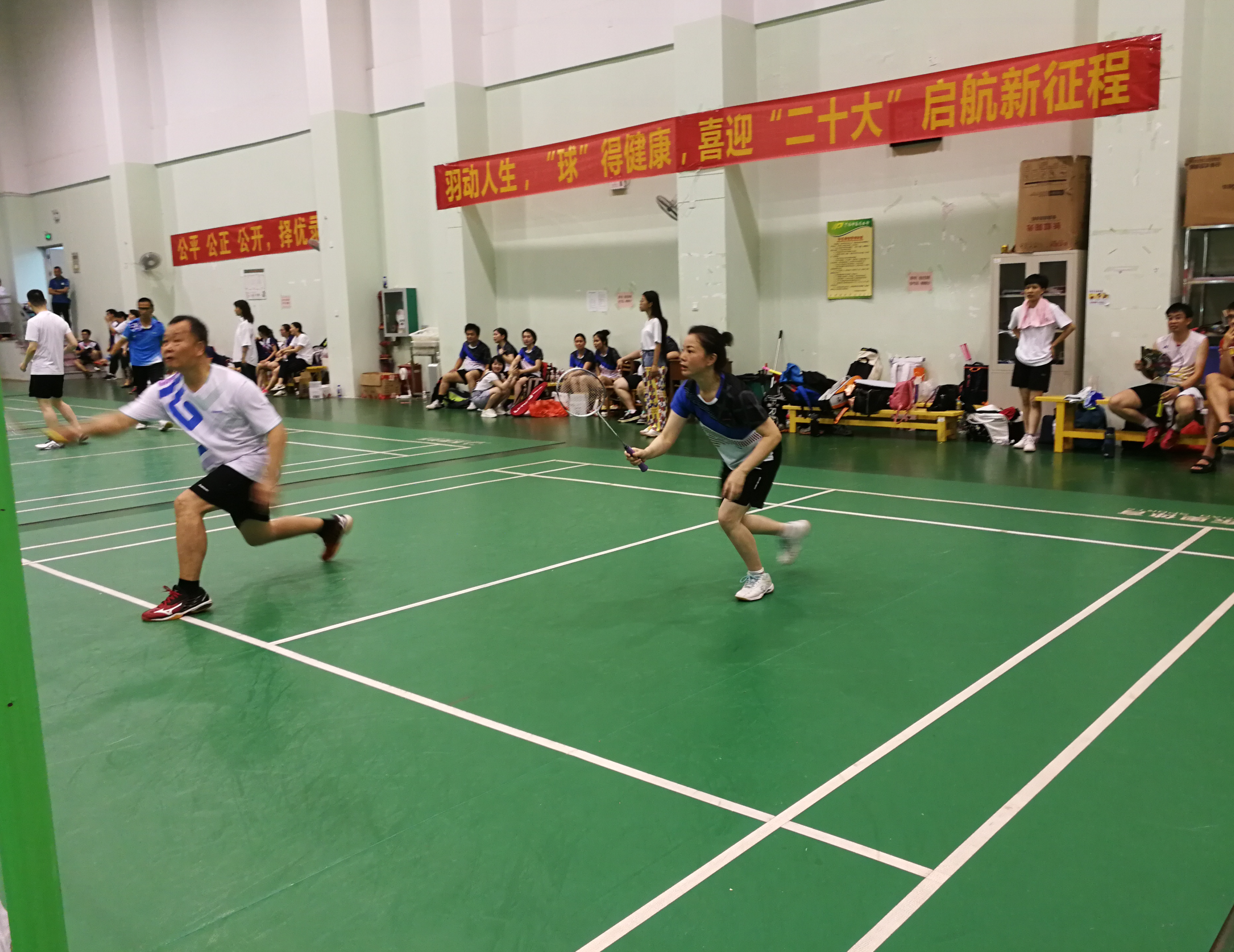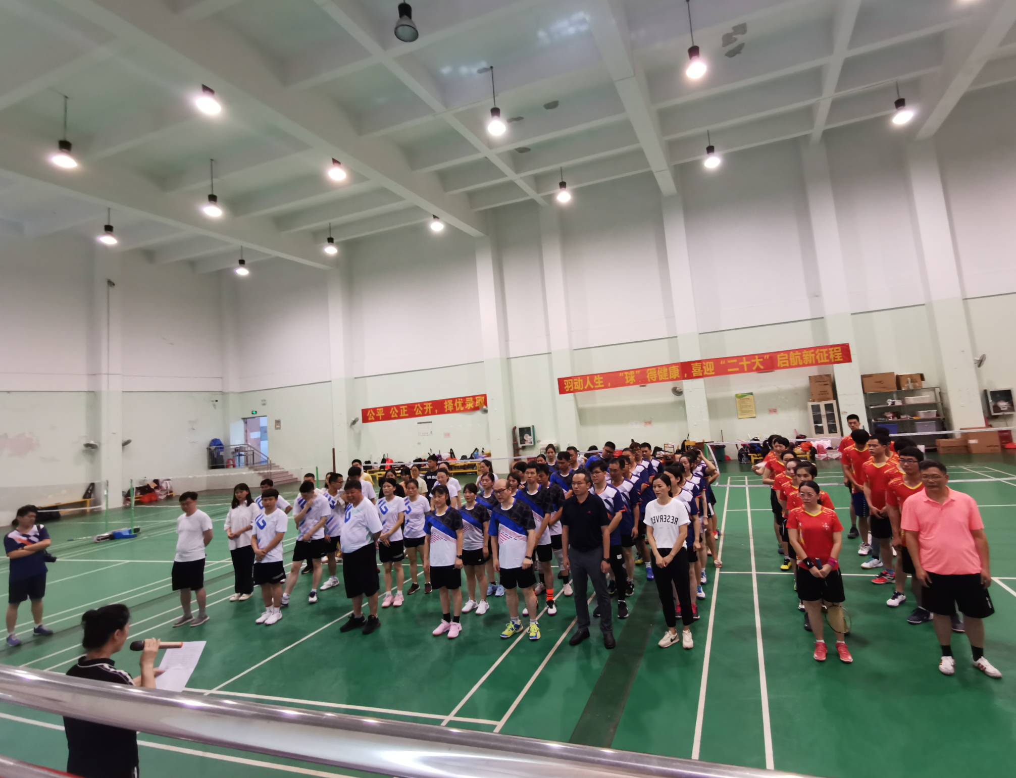 7月2日下午,鸭脖举行2022年“羽动人生,球得健康,喜迎二十大,起航新征程”为主题的全校教职工羽毛球比赛在仙葫校区体育馆圆满落下帷幕。此次比赛由学校体育运动委员会主办,学校工会、体育部承办,学校教职工羽毛球协会协办。学校纪委书记覃宇环出席开幕式并参加比赛。校工会常务副主席李欢澄主持开幕式。校本部代表队、第一附属医院代表队、附属瑞康医院代表队、附属国际壮医医院代表队共4支队伍100多名羽毛球运动员参加此次比赛。