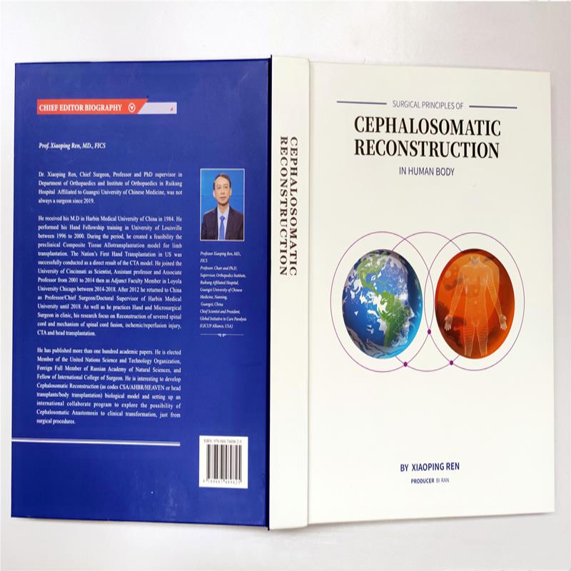 《人体头身重建外科原理》(英文版)由任晓平教授主编,该书共500页,十个章节,日前已由中国香港中华文献出版社正式出版发行。美国梅奥医院外科医生和美国外科杂志主编、冠名教授Sarr教授、意大利国际著名神经外科医生Canavero教授、澳大利亚脊柱外科杂志主编Mobbs教授亲写序言,并高度评价了这一学术成果是“国际脊髓损伤研究领域最重要和最具有创新性的突破和成果”。据了解,这是中国乃至世界医学史上从外科学上、解剖学上和生理学上首次科学地、系统地阐述人体头身重建外科原理和意义,原创性地研究和设计出了人体头身重建术外科程序、方案和手术流程的著作,具有一定的前沿性和开拓性。