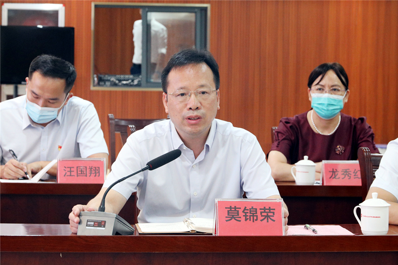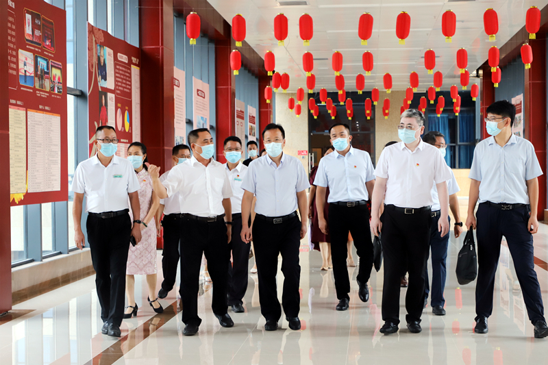 为了发挥党建引领作用,筑牢基层战斗堡垒,有效推动附属瑞康医院空港院区高质量发展,9月1日上午,学校党委书记莫锦荣在党委办公室主任徐方明的陪同下到附属瑞康医院空港院区调研指导工作。扶绥县委书记黄建辉、副县长张虎严、县委办公室主任方红圣及相关单位负责人出席座谈会,附属瑞康医院党委书记高宏君,院长唐友明,党委副书记、副院长陈日兰率领党办、院办、医务部、护理部、空港院区等负责人参加座谈并陪同考察。高宏君主持座谈会。