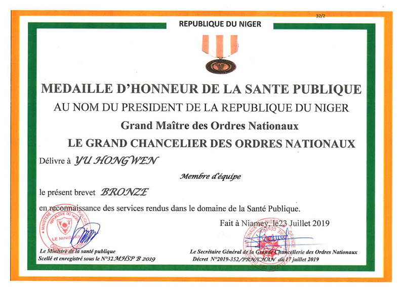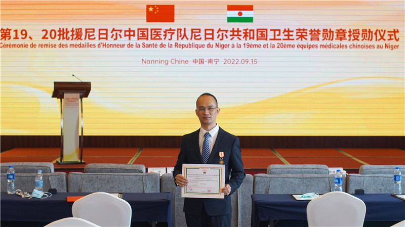 附属瑞康医院第20批援尼日尔中国医疗队员羽洪文获颁尼日尔共和国卫生荣誉勋章