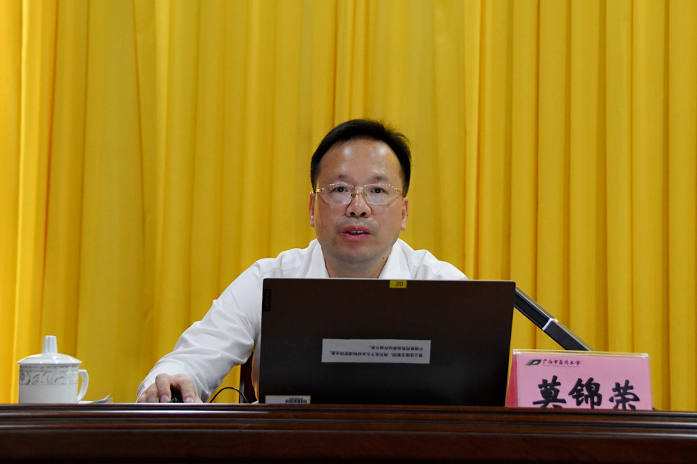 10月14日下午,YABO鸭脖党委理论学习中心组学习(扩大)会在仙葫校区图书馆第二会议室召开。学校党委书记、保密委员会主任莫锦荣在会上讲授保密专题党课。党委副书记、校长姚春,党委副书记庞宇舟,党委副书记、保密委员会副主任何并文,副校长冷静,纪委书记覃宇环,总会计师何刚亮出席会议,全体中层干部和各部门、单位办公室负责人参加了会议。会议由何并文主持。