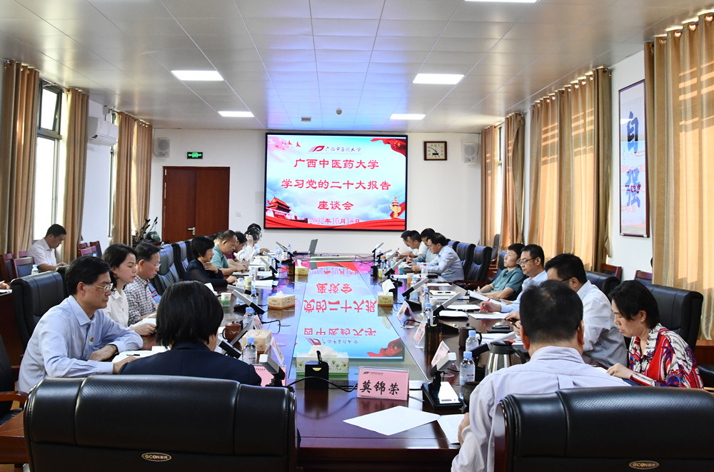 党的二十大召开期间,10月18日下午,鸭脖在仙葫校区合德楼525会议室召开了学习党的二十大报告座谈会。学校领导,全体党委委员、二级党委(党总支)书记集中学习了党的二十大报告和习近平总书记参加广西代表团讨论时的重要讲话精神,并进行了交流发言。学校党委书记莫锦荣,党委副书记、校长姚春作了中心发言,党委副书记何并文,党委常委、副校长冷静,党委常委、纪委书记覃宇环,党委常委、总会计师何刚亮,党委常委、组织部长唐振宇也结合自己的工作实际,分享了自己的学习体会和感悟。
