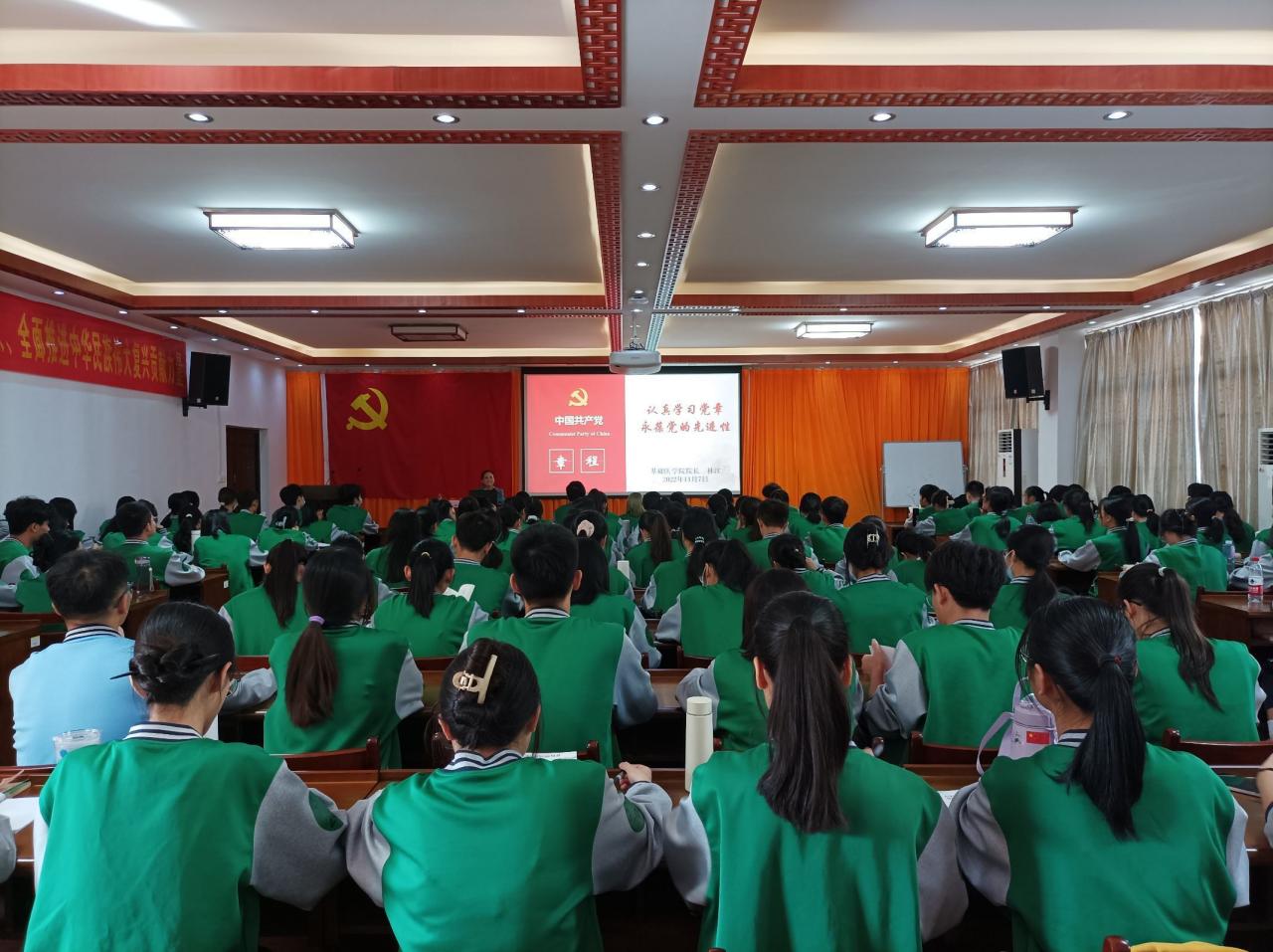 10月28日,教学教辅党委书记罗晓燕以《学习党的二十大报告》为题给图书馆党支部上专题党课,对党的二十大精神进行专题辅导。11月8日,基础医学院党委副书记、院长林江以《认真学习党章永葆党的先进性》为题给发展对象、入党积极分子培训班全体学员上了一堂专题党课。11月15日,药学院党委邀请马克思主义学院院长韦兆钧为师生党员上专题党课,对党的二十大精神进行解读。11月17日,一附院党委书记桂雄斌为全院党务工作者上了题为“深入学习宣传贯彻党的二十大精神 以奋斗担当书写精彩人生”专题党课。